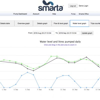 - You can use the Smarta system to send an alert when desired flow rates, borehole water levels and/or reservoir contents are not observed